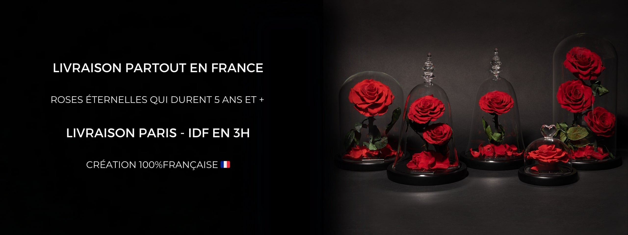 Grâce à la livraison express de votre rose éternelle sous cloche, inutile de vous déplacer en boutique et perdre du temps. Vous commandez et vous recevrez en moins de 3 h à Paris et dans sa banlieue, votre jolie boite de rose Paris ! Vous pouvez également faire votre commande de bouquet en vous faisant livrer en moins de 24 h dans toute la France avec Chronopost en cadeau livraison 24 h. Commandez aujourd’hui et dès demain matin votre rose éternelle sous cloche sera livrée.