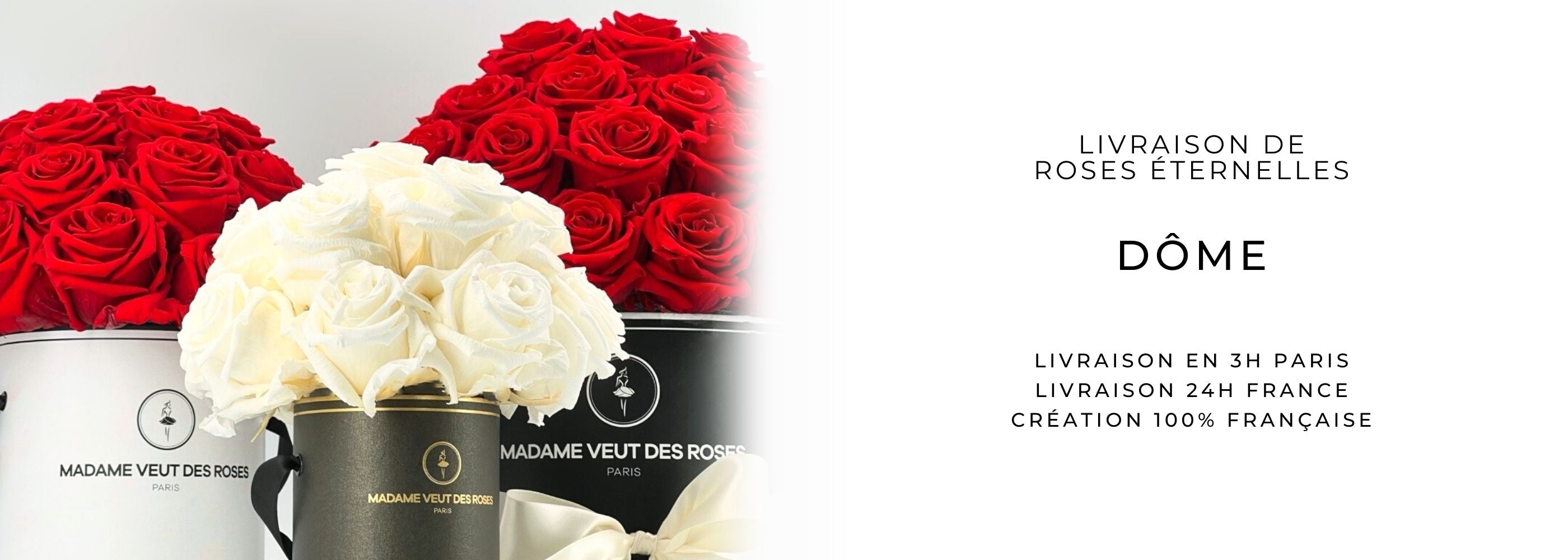 Que vous soyez en région parisienne ou ailleurs en France, "Madame Veut Des Roses" promet une livraison rapide et sûre. Avec une livraison possible dans les 3 heures en région parisienne et en 24 heures partout en France, chaque moment spécial est célébré avec ponctualité et élégance. Les livraisons de roses éternelles en forme de dôme se font à domicile ou bien en point relai, selon vos choix.