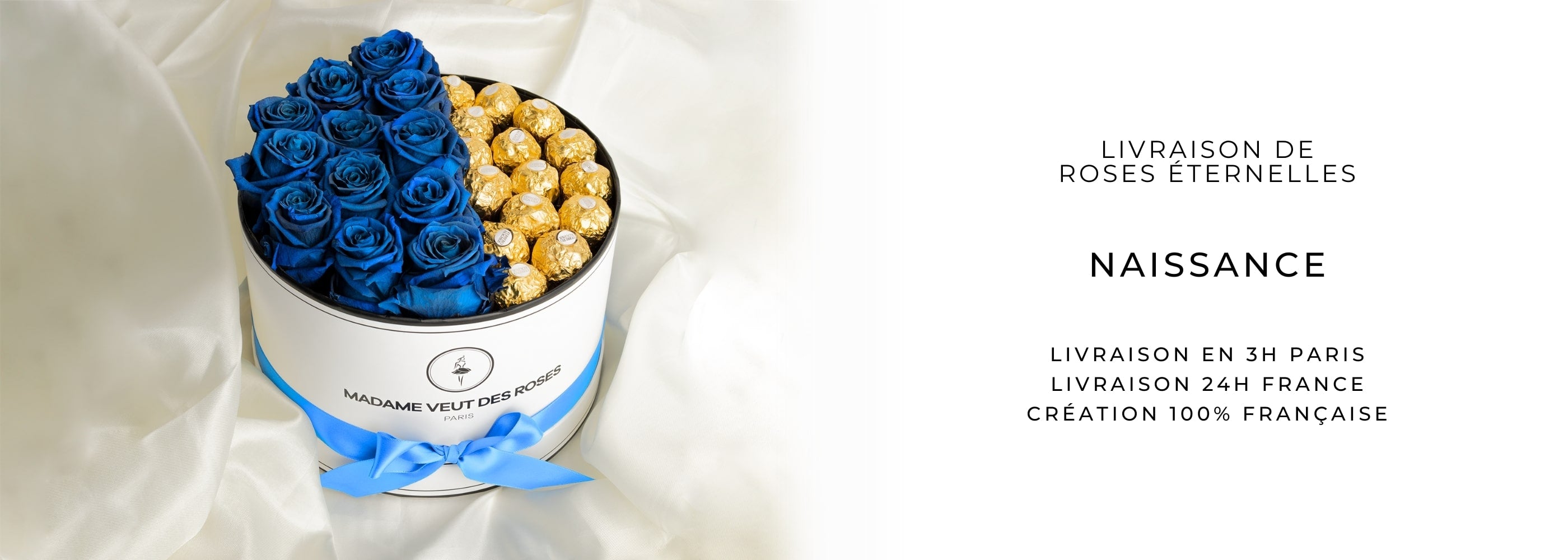 ¿Una idea de regalo para un baby shower? Seguramente te estarás preguntando dónde comprar rosas eternas en París. ¿Le gustaría encargar una caja de rosas eternas lo antes posible? Gracias a nuestro servicio de envío urgente de rosas eternas, su caja de rosas eternas llegará en menos de 3 horas a París y en 24 horas a Francia. Estés donde estés, podrás enviar flores a Europa y podrás enviar rosas eternas a cualquier lugar de Francia . ( Eternal Rose Delivery París , Eternal Rose Delivery Marsella , Eternal Rose Delivery Lyon , Eternal Rose Delivery Toulouse , Eternal Rose Delivery Cannes , Eternal Rose Delivery Estrasburgo ). Esta forma de envío es gratuita y no supone ningún coste adicional. La entrega de nuestras cajas de flores eternas es gratis a partir de 50€ de compra Con Mondial Relay podrás encontrar tu caja de rosas eternas en un punto de relevo en 5 días. Madame Veut des Roses te acompaña en esta nueva etapa de tu vida de la forma más bonita posible. ¡No esperes más y haz tu pedido online con Madame Veut des Roses!